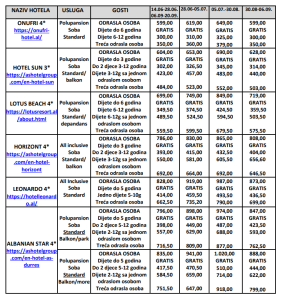 TERMINI BORAVKA U HOTELIMA 14.06-20.09.