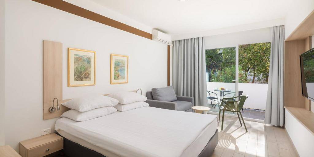 Sobe – 20 Superior dvokrevetnih soba s balkonom, morska strana (20m2 ) – Oprema soba – kupaonica s tušem – sušilo za kosu – WiFi i internet priključak SAT LCD – mini bar – sef – klima uređaj (grijanje/hlađenje) – telefon