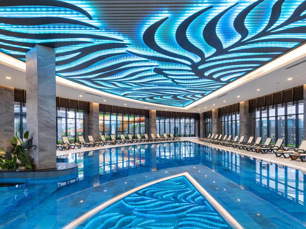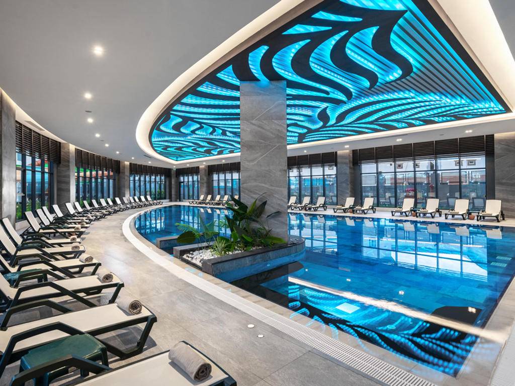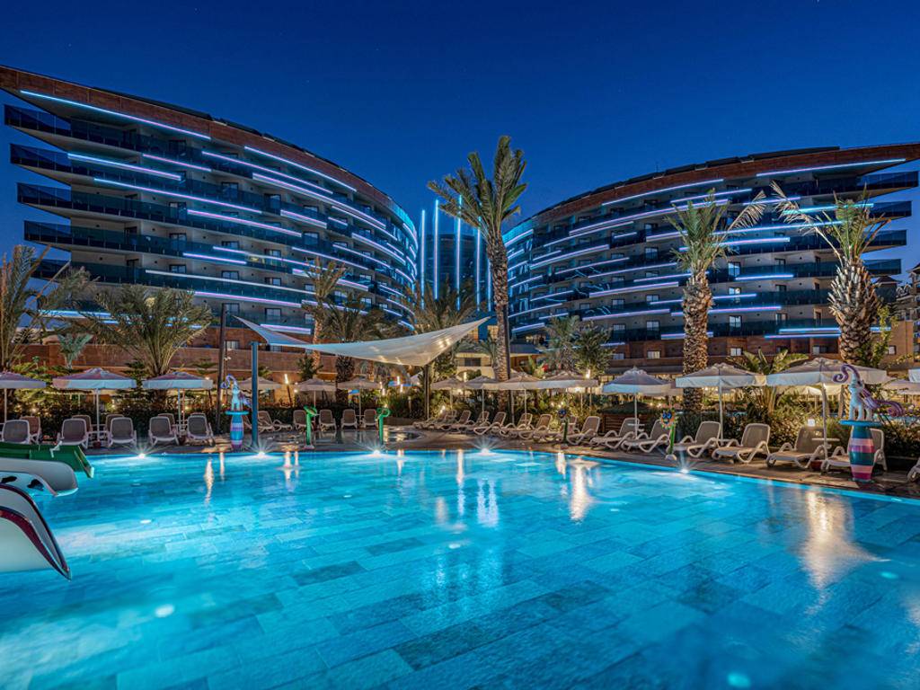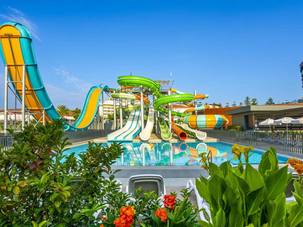 Otvoreni i zatvoreni bazeni za odrasle i djecu, baby pool, tobogani, fitness centar, tursko kupatilo, sauna, stolni tenis, odbojka na pijesku. Dodatno se naplaćuje: masaža, bilijar, sportovi u vodi, Spa centar. Zabavni program tokom dana, natjecanja na plaži i bazenu, večernji show programi. Mini klub za djecu od 04-12 godina sa različitim aktivnostima i programima. Takođe, postoji Baby Star paket za porodice sa bebama – oprema za bebe i besplatan obrok. Paket se može zatražiti na recepciji.