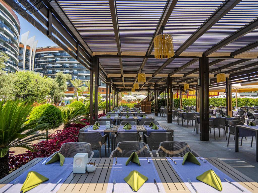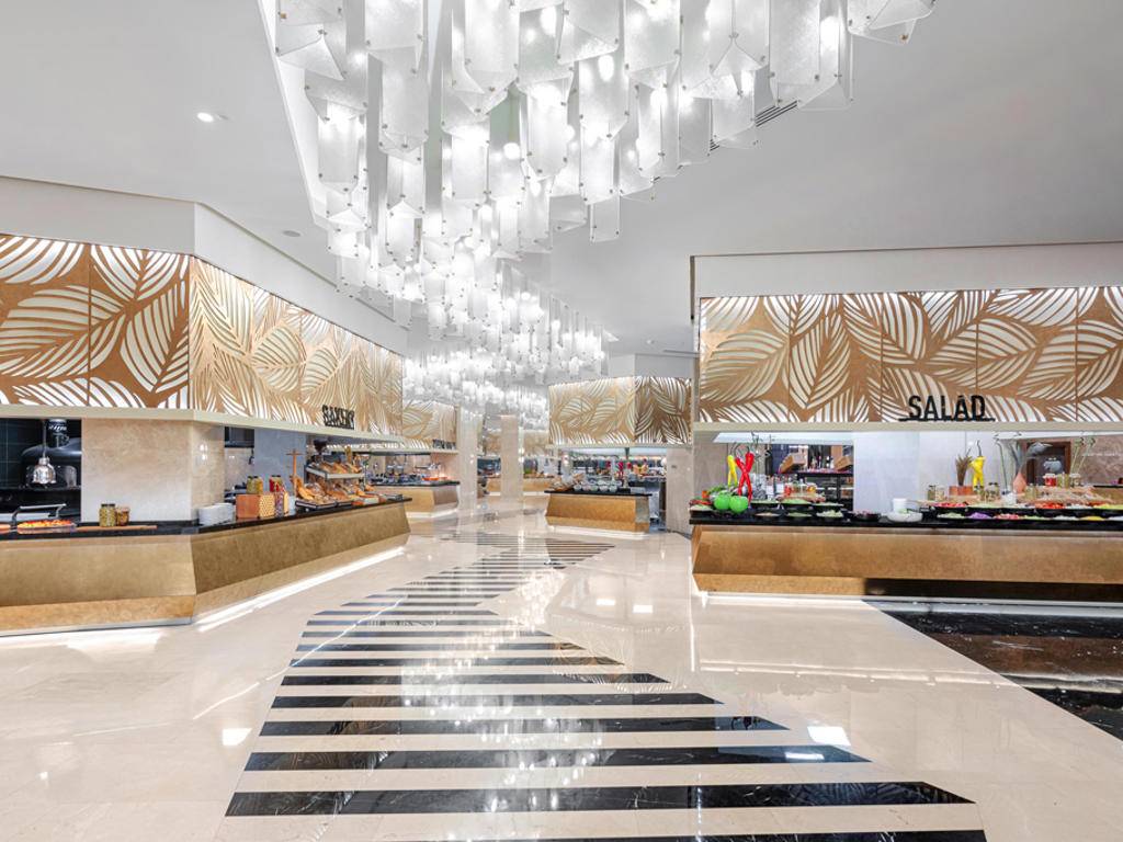 Ultra All-Inclusive – 24 sata usluga hrane i pića: švedski sto za doručak, kasni doručak, ručak, večeru, jutarnje i popodnevne užine, kasni noćni bife, rani doručak, bife za djecu i baby kutak (s mogućnošću pripreme hrane za bebe), bife sa dijetalnim i bezglutenskim jelima, sladoled poslijepodne, svježi voćni sokovi (samo za doručak), A’la Carte restorani uz prethodnu rezervaciju (samo jednom tokom boravka), lokalna i uvozna alkoholna i bezalkoholna pića, Beach bar od 10:00 do 18:00. Dodatno se naplaćuju: premium uvozna pića, specijalna vina, svi flaširani i konzervirani napici, svježi voćni sokovi, energetska pića, nargila, room service.