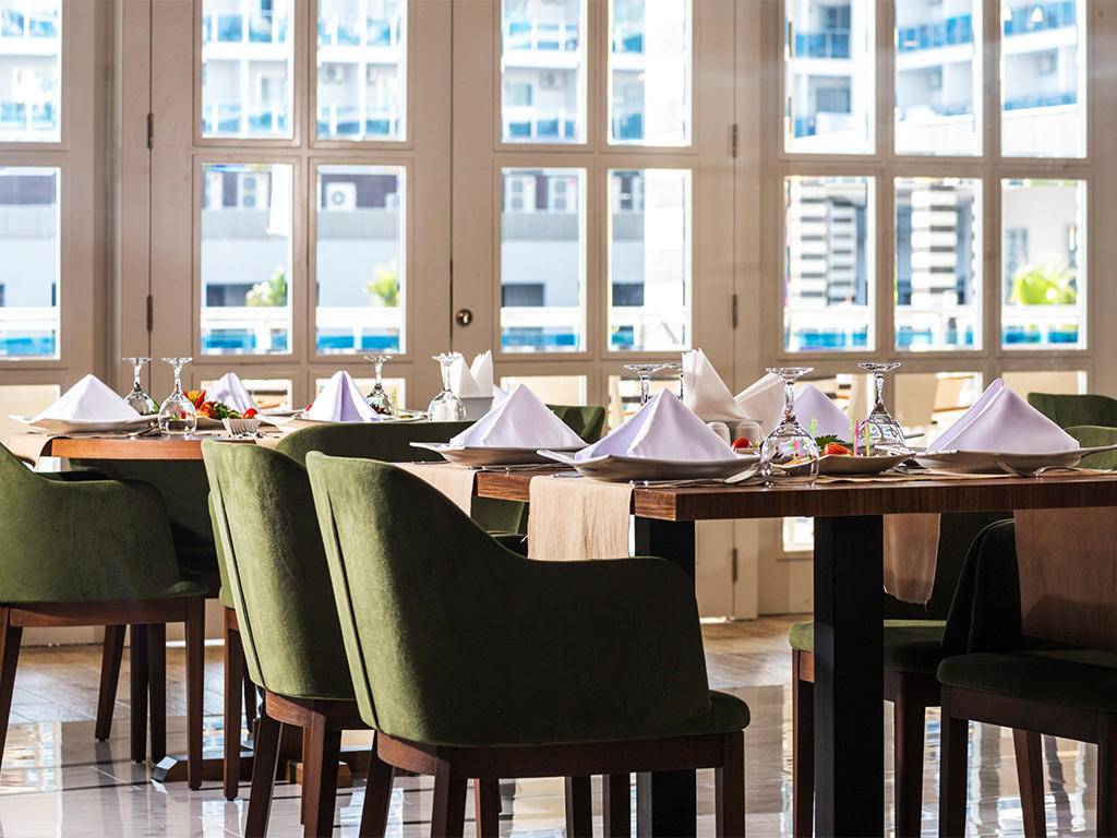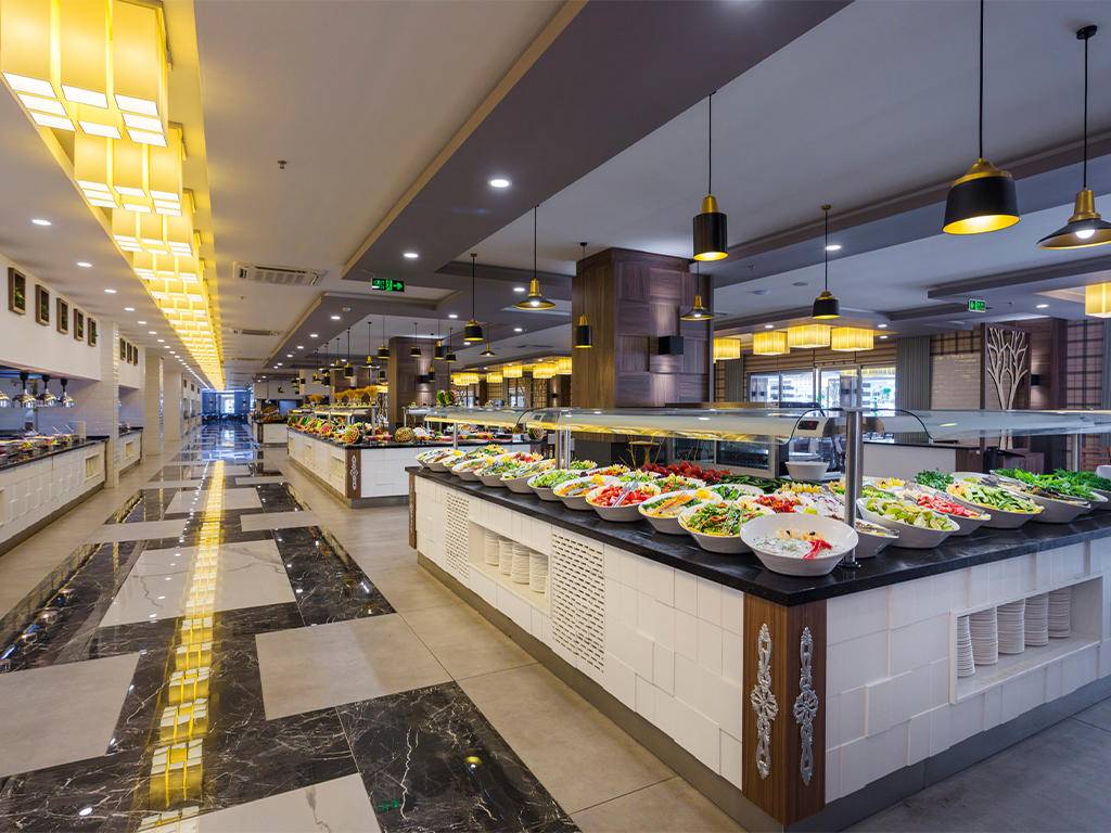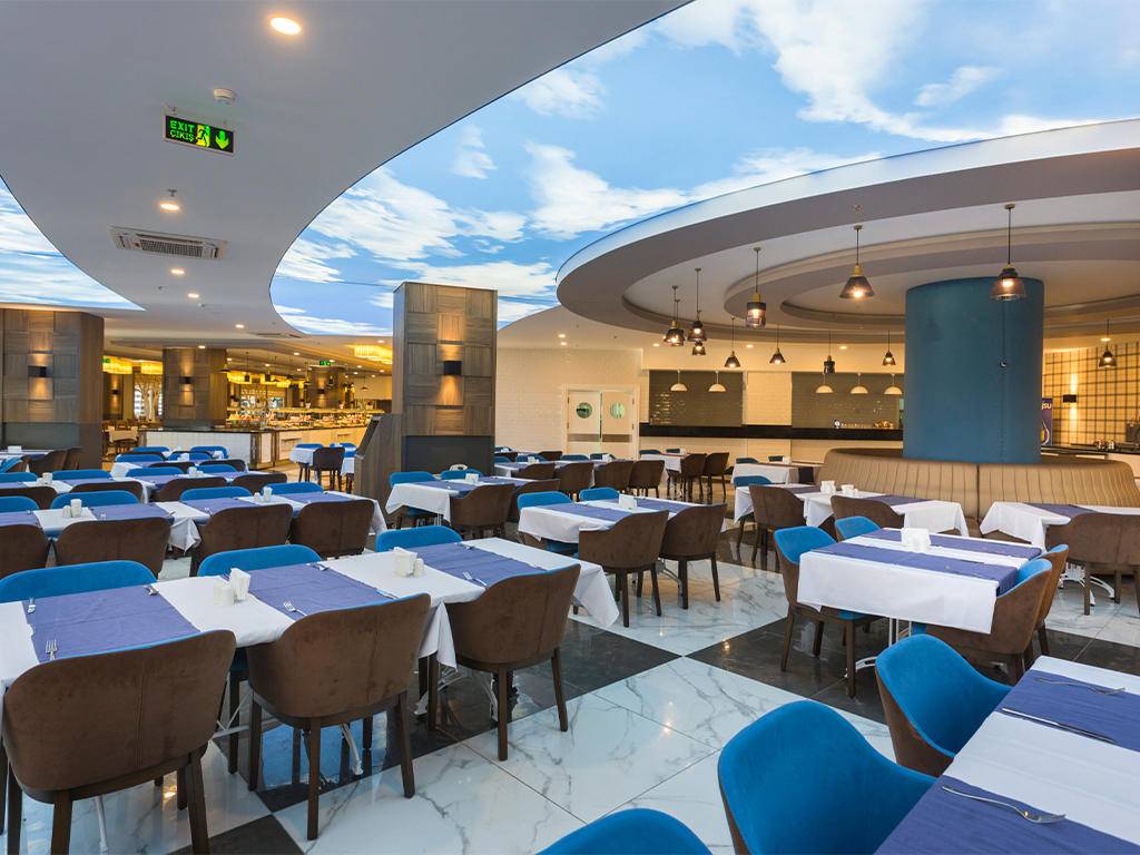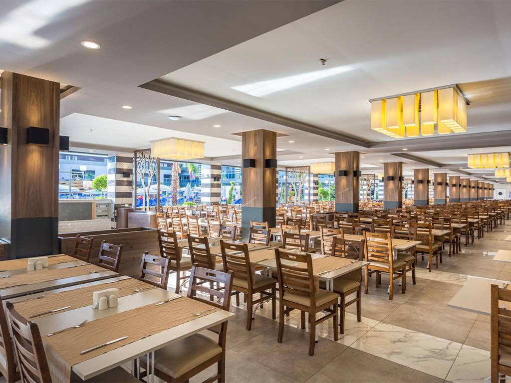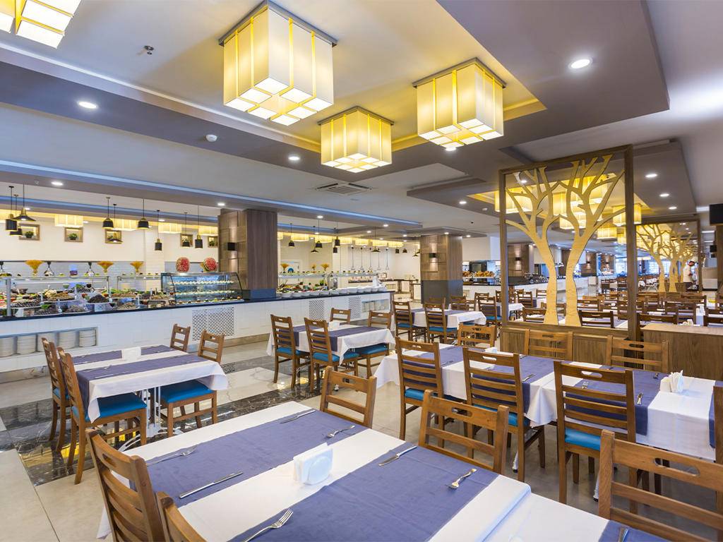 Ultra all inclusive – otvoreni švedski stol za doručak, kasni doručak, ručak, večeru, jutarnji snack i popodnevni čaj, kafa, kolači, ponoćni snack, lokalna alkoholna i bezalkoholna pića, Burgerland otvoren 24 sata (zatvoren samo tokom glavnih obroka u Glavni restoran), A’la Carte restorani uz prethodnu rezervaciju i jednom tokom boravka, sladoled u slastičarnici u određenim satima. Nije uključeno: sve vrste uvoznih pića, sva flaširana pića, posebna vina, svježi voćni sokovi, room service, pića u Disco klubu i sva žestoka pića na otoku Eftalia.