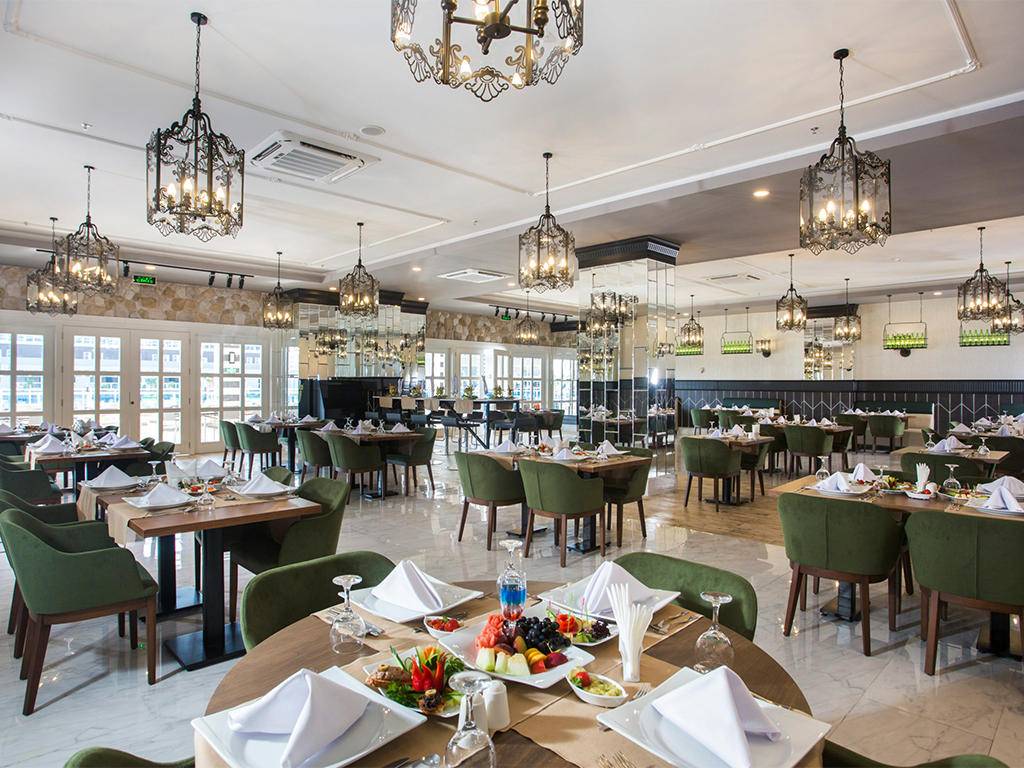 Glavni restoran na bazi švedskog stola, A’la Carte restorani – turski, italijanski, Burger Land, lobby bar, bar pored bazena, bar na plaži, Disco klub na otoku Eftalia. Doktor na upit, praonica rublja, čuvanje djece, frizer, telefon, fax, internet, računalne igre, shopping centar, rent a car uz nadoplatu. WI-FI internetska veza u općim područjima besplatno.