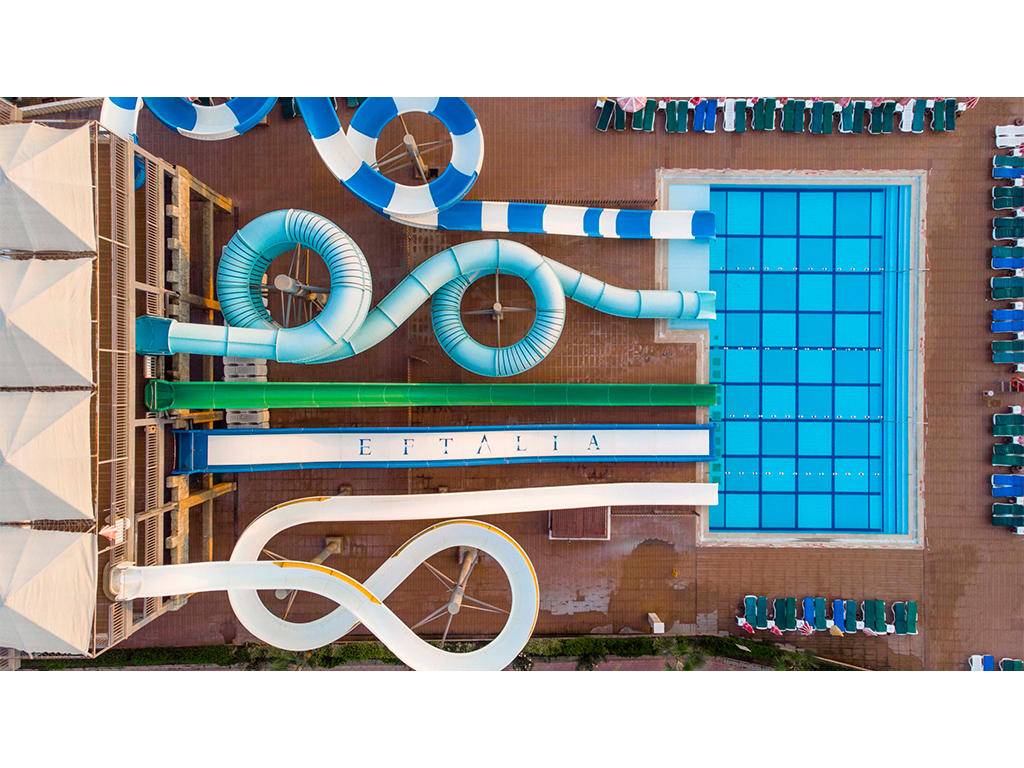 Otvoreni i zatvoreni bazeni za odrasle i djecu, Aqua park, fitnes centar, tursko kupatilo, sauna, parno kupatilo, stoni tenis, odbojka na pijesku. Uz doplatu su: sportovi na vodi, bilijar, beauty centar, masaža. Zabavni programi (na otoku Eftalia) tokom dana, takmičenja, navečer show programi. Mini klub za djecu od 04 -12 godina.