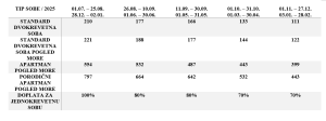 - boravišna taksa i osiguranje – 4 KM po osobi/dnevno