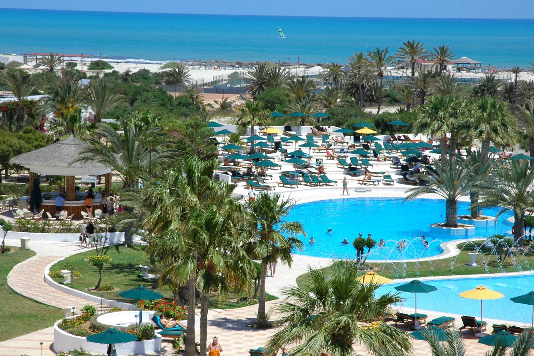 HOTELSKA PONUDA: Hotelski kompleks, Djerba Plaza, posjeduje vanjski i unutarnji bazen, gift shop, usluge uljepšavanja, Business centar i konferencijsku salu, bankomat, mjenjačnicu, a smješten je na privatnoj pješčanoj plaži. Suncobrani i ležaljke su besplatni na plaži i bazenu, do raspoloživosti. Gosti hotela mogu uživati i u raznovrsnim hotelskim aktivnostima: aerobik, bingo (uz doplatu), zabave i animatorski program, časovi kuhanja, vodeni sportovi (uz doplatu), noćnom klubu, sportskim aktivnosti kao što su stolni tenis, tenis, fitness, spa i wellness centar (uz doplatu), sauna (doplata).