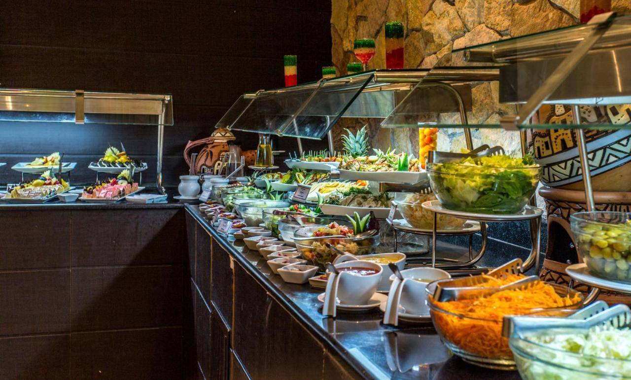 All Inclusive – doručak, kasni doručak, ručak, večera, kasna večera (samoposluživanje – izbor više jela po hotelskim pravilima). Hotel u svojoj ponudi ima pet A’ la Carte restorana – Om Ali (egipatska kuhinja, besplatan jednom u toku boravka), Mama Mia (italijanska kuhinja), Tiger Lilly (kineska kuhinja, besplatan jednom u toku boravka), Jabur (indijska kuhinja), kao i riblji restoran. Dodatno se plaćaju: uvozna alkoholna i bezalkoholna pića, a’ la carte restorani, Fresh Bar, Lobby Bar u periodu 00:00-10:00 (voda i juice besplatni samo), piće u diskoteci, nargila, turska kafa, irska kafa, svježe cijeđeni sokovi kao i sve ostalo van koncepta.