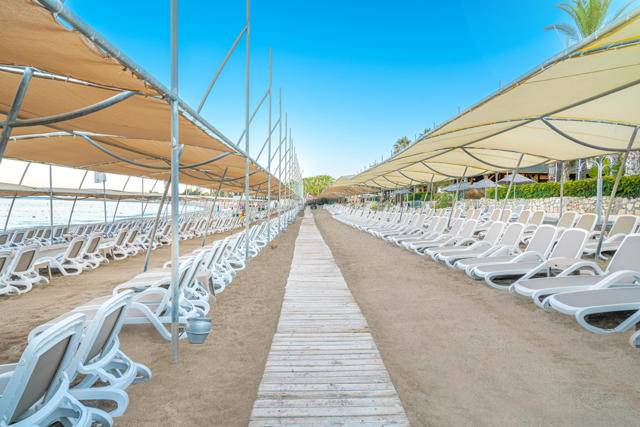Hotelska privatna plaža – pješačka i šljunčana, sa ležaljkama, suncobranima, peškirima i madracima koji se ne naplaćuju
