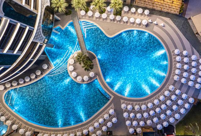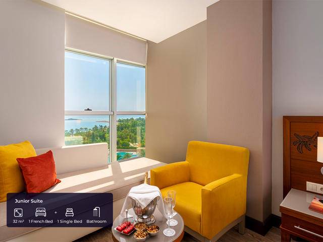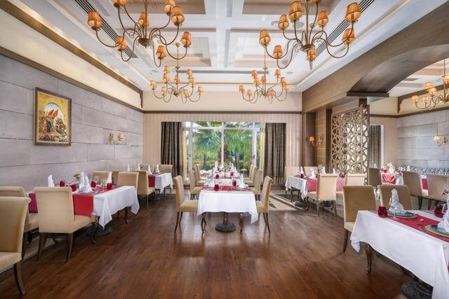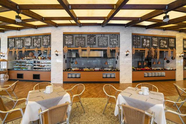 Ultra all inclusive – hrana & usluga pića 24 sata – otvoreni švedski stol za doručak, kasni doručak, ručak, snack u restoranu na plaži od 10.00 – 18.30 sati, popodnevna kafa, čaj i kolači, večera i ponoćni snack, noćni doručak, domaća i standardna uvozna alkoholna i bezalkoholna pića, svježi sok od naranče za doručak, dječji buffet, baby kutak otvoren 24 sata, organski buffet i buffet bez glutena, sladoled u određenim satima, A’la Carte restorani uz prethodnu rezervaciju i jednokratni boravak u samo jednom restoranu. Nije uključeno: Premium uvozna pića, flaširana i konzervirana pića, svježi voćnisok, vodena lula, Steak House A’la Carte restoran, posluga u sobu.