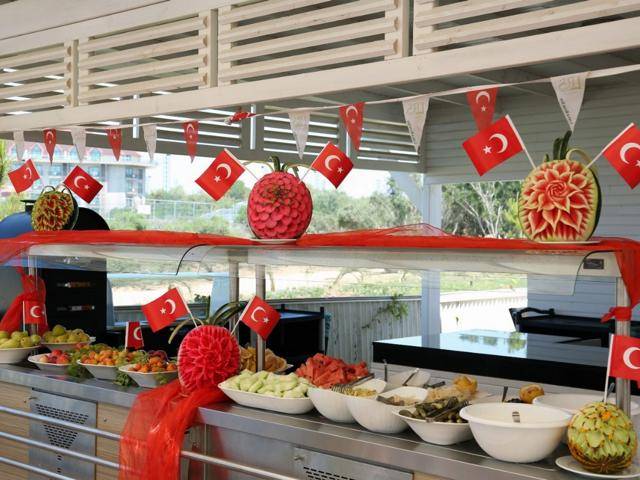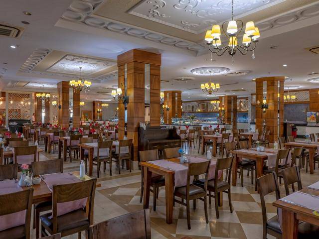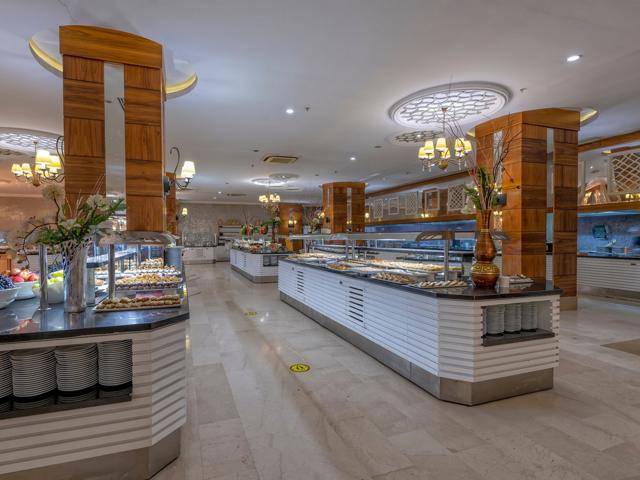 Glavni restoran sa uslugom švedskog stola, A’la Carte restorani: Lalezar – turska kuhinja, Violino – talijanska kuhinja, barovi u hotelu. Dodatno se naplaćuju: usluge doktora, usluge čuvanja djece, pranje veša, hemijsko čišćenje, frizer, telefon, faks, internet kutak i računalne igre, tržni centar, rentanje automobila. WI-FI internet konekcija u cijelom hotelu i na plaži je besplatna.