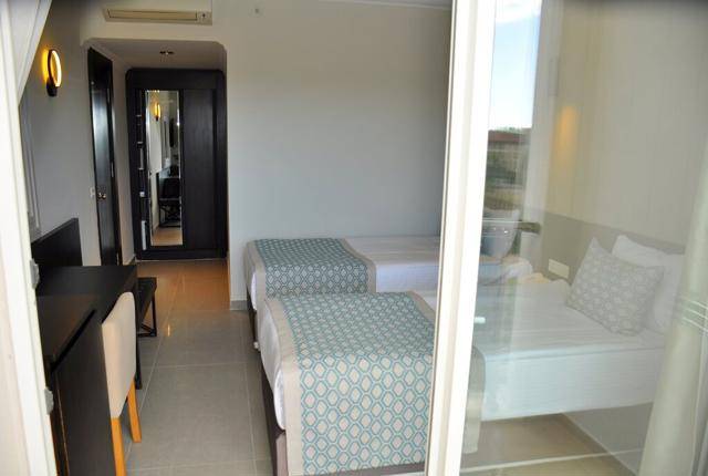 Hotel ima ukupno 418 soba. Standardne sobe (16-27 m²; jedna spavaća soba sa francuskim krevetom i jednim singl krevetom, drugo dijete spava sa roditeljima, maksimalno 2+2 osobe), Economy sobe (16-27 m², maksimalno 2 osobe), Porodične sobe (45 m², dve spavaće sobe sa vratima između, jedno kupatilo, maksimalno 4 osobe). Sve sobe imaju privatno kupatilo sa tušem, papuče, fen za kosu, klima sistem, direktnu telefonsku liniju, sef, mini bar (voda, bezalkoholna pića i pivo dopunjavaju se svakog dana), laminat na podu, satelitsku TV i muzičke kanale, WI-FI internet i balkon.