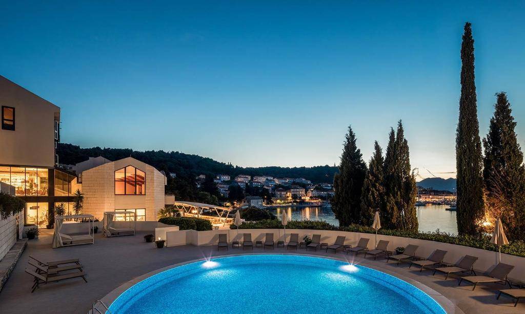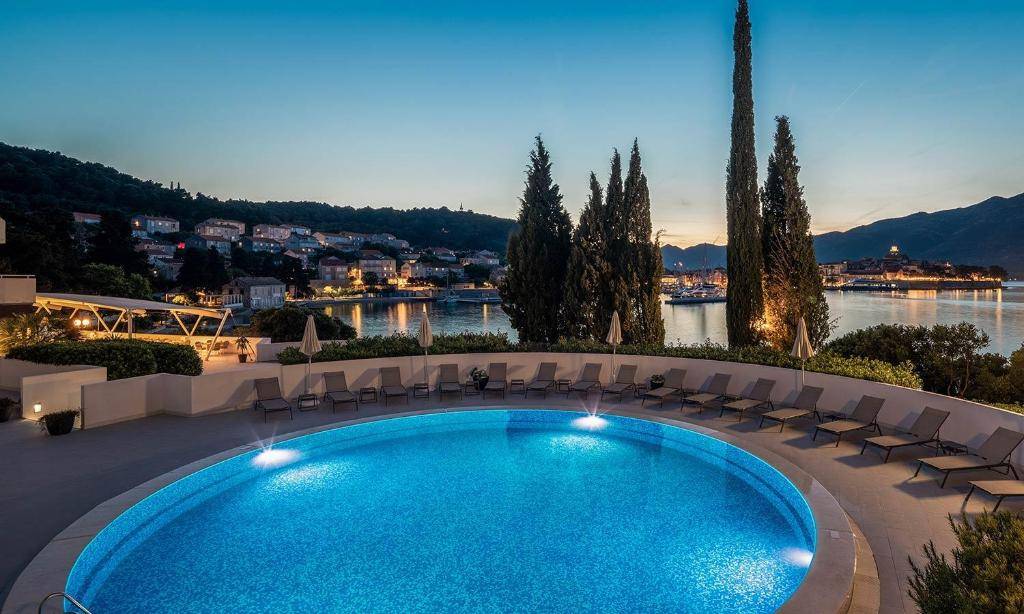 SADRŽAJI: 112 soba, veliki restoran, a la carte restoran, terasa sa pogledom na more, lobby bar, pool bar, wellness centar u hotelu Marko Polo (finska sauna, turska sauna, hidro masaža, solarij, masaže, fitness, unutaranji bazen sa grijanom slatkom vodom – zatvoren u julu i augustu). Wifi u cijelom hotelu, parking, vanjski bazen sa morskom vodom, 2 zemljana teniska terena, mini golf, animacija, mini klub.