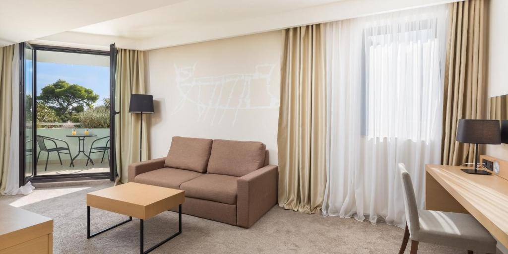 HA2M: Superior suite s balkonom, morska strana. Twin/double. Odvojen dnevni boravak od spavaće sobe. Sofa na razvlačenje u dnevnom boravku za 2 osobe. Kupaonica s kadom. Dodatni WC. Max kapacitet: 4 odrasle osobe ili 3 odrasle osobe i 1 dijete ili 2 odraslih + 2 djece.