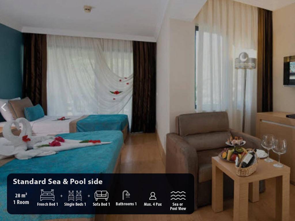 Hotel ima ukupno 685 soba. Standardne sobe u glavnoj zgradi (28m², jedna spavaća soba, jedno kupatilo, pogled na more i bočni pogled na more i bazen), Standard sea i pool side – zgrada Arycanda (28 – 32m², jedna spavaća soba, jedno kupatilo, max.2+2pax), Garden standard sobe (28 – 32m², jedna spavaća soba jedno kupatilo, max.2+2pax, nalazi se u vrtu), Family sobe samo u vrtnom dijelu (39m2, 2+2pax, dvije spavaće sobe sa vratima između, jedno kupatilo). Sve sobe imaju: balkon ili terasu sa morskom ili vrtnom stranom, sopstveno kupatilo sa kadom, fen za kosu, telefon u kupatilu, centralna klima koja radi ovisno o vremenskim uslovima, telefon sa direktnim biranjem, laminatni pod, sef, mini bar (svakodnevno dopunjavanje bezalkoholnih pića, vode i piva), SAT TV i muzički kanali, WI-FI internet.