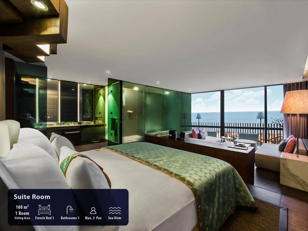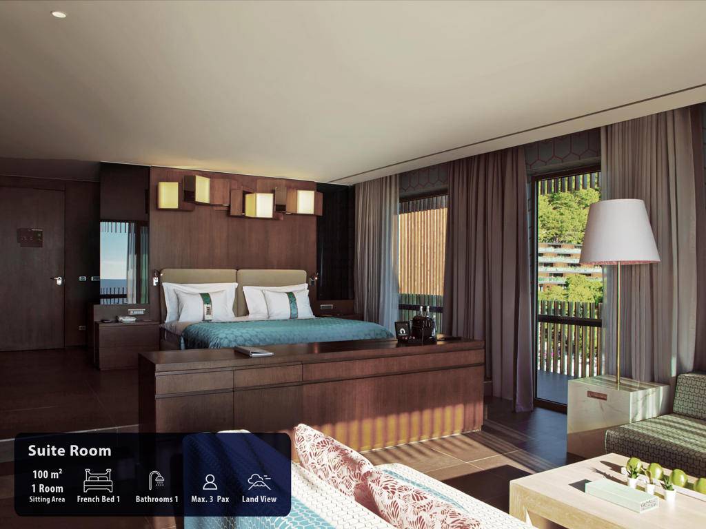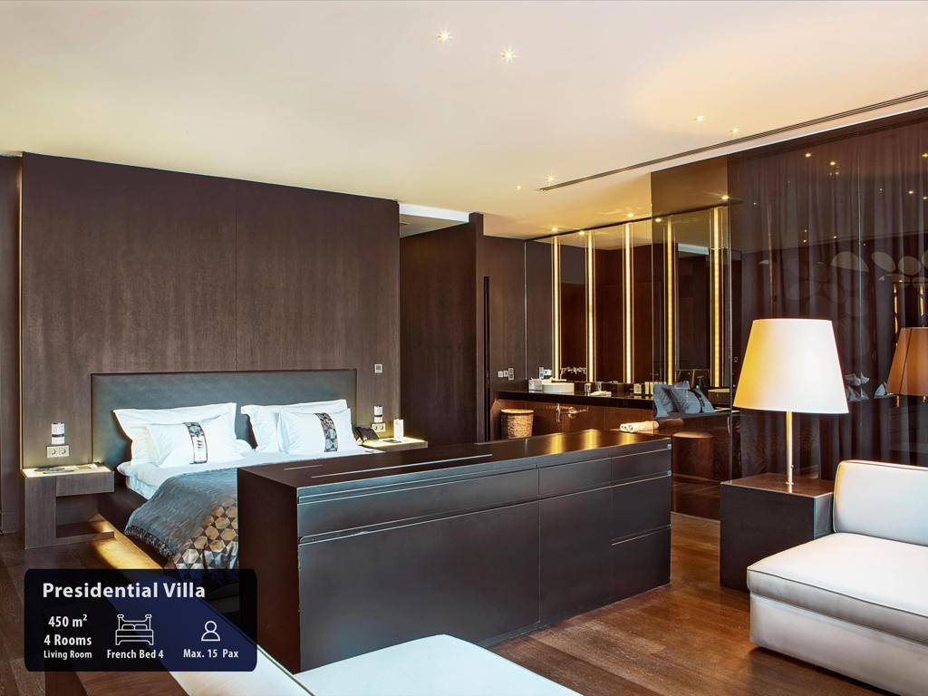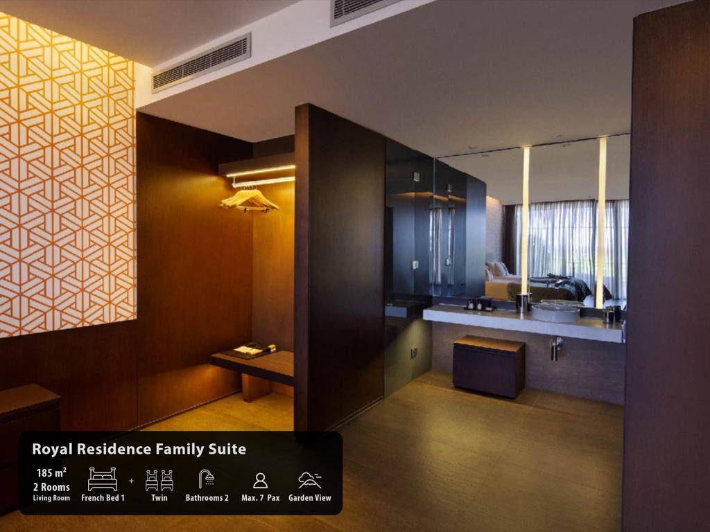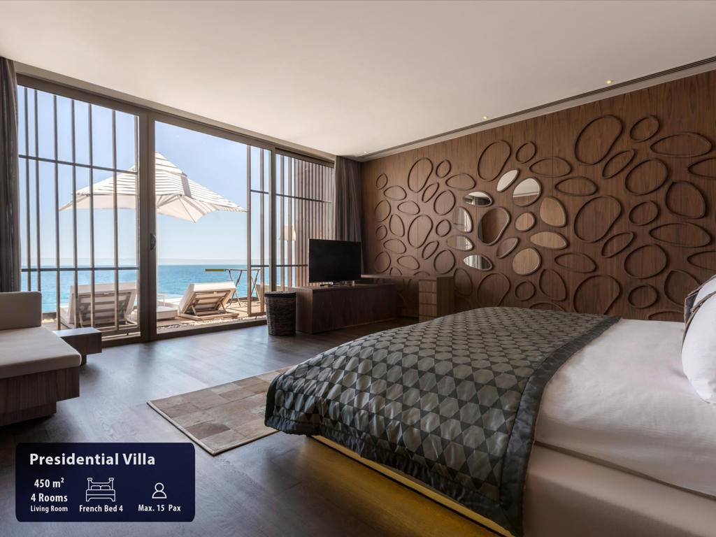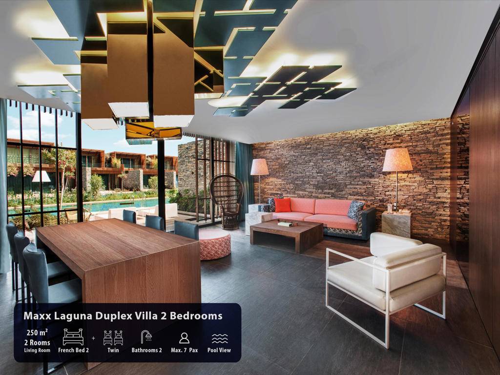 Hotel ima ukupno 291 sobu, smještene u glavnu zgradu, Royal Suit blokove, Laguna i Beach Vila. Maxx Suits: Suit land / Suit Sea (glavna zgrada,pogled na zemljište ili pogled na more, 100m2, prostor za sjedenje, jedna spavaća soba, jedno kupatilo sa đakuzijem, garderoba, max.3pax). Royal Suit Blocks: Royal Suit Family Garden / Sea (185m2 uključujući terasu, Roial Suit blokovi, jedan dnevni boravak, dvije spavaće sobe sa tušem, i velika terasa sa đakuzijem, garderoba, max.6pax + 1inf). Maxx Villas: Maxx Laguna 1 spavaća soba (150m2 uključujući terasu, Laguna apartman, pogled na bazen i direktan pristup bazenu, jedna dnevna soba, jedna spavaća soba, jedno kupatilo sa tuš kabinom, garderoba, terasa sa đakuzijem, max.3+1chd+inf), Maxx Laguna Duplex 2 spavaće sobe (250m2 uključujući terasu, Laguna apartman, dupleks, pogled na bazen i direktan pristup bazenu sa terase, jedna dnevna soba, dvije spavaće sobe, dva kupatila, garderoba, terasa sa đakuzijem, privatna bašta, max.5pax+ 1chd+inf). Maxx Laguna Duplex 3 spavaće sobe (310m2 uključujući terasu, Laguna apartman, dupleks, pogled na bazen i direktan pristup bazenu sa terase, jedan dnevni boravak, tri spavaće sobe sa kupatilom, jedan ulazni hol, garderoba, dvije terase, na poslednjem spratu terasa je đakuzi , privatna bašta, max.10pak+1inf), Beach Villa 3 spavaće sobe (250m2, privatna vila, dupleks, tri spavaće sobe, privatni otvoreni bazen i terasa, dnevni boravak sa otvorenom kuhinjom, ulazni hol, 3 kupatila (glavna spavaća soba sa đakuzijem), terasa sa đakuzijem, sauna, direktan pristup plaži iz bašte, ekskluzivno Kabana na plaži), Beach Villa 4 spavaće sobe (350m2, privatna vila sa otvorenim bazenom, četiri spavaće sobe, glavna spavaća soba sa đakuzijem, dnevni boravak sa otvorenom kuhinjom, tri kupatila, sauna, terasa sa đakuzijem, direktan pristup iz bašte na plažu, ekskluzivna Cabana na plaži), Presidential Villa (450m2, privatna vila sa pogledom na more i privatnim zatvorenim i otvorenim bazenom i terasom, pet spavaćih soba (glavna spavaća soba sa đakuzijem), jedna dnevna soba, jedna trpezarija sa kuhinjom, tri garderobe, 6 kupatila jedno sa đakuzijem, sauna, turska kupatilo, terasa sa đakuzijem, direktan pristup plaži iz bašte, ekskluzivna Cabana na plaži). Sve sobe su luksuzno uređene sa sopstvenim kupatilom sa tuš kabinom i đakuzijem, fenom, ogledalom za šminkanje, bade mantilom, papučama, vagom, telefonom sa direktnim biranjem, split klima sistemom, garderobom sa zaključavanjem, mini barom u Makk Suit sobama i Maki bar u vili Maxx, WI-FI internet, set za čaj i kafu, sef, LCD TV, satelitski programi, raspremanje kreveta, voće i cvijeće po dolasku.