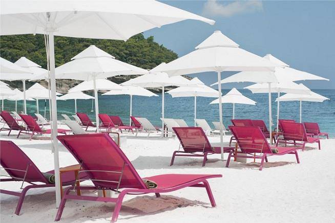 Privatna hotelska plaža jedna je duga 400m – Long Beach, druga je duga 200m – Middle Bai Beach i Tangerine Beach je duga 200m, pješčana i šljunkovita, a 30m duga pješčana plaža za djecu dva privatna mola, ležaljke, suncobrani, peškiri za plažu besplatno. Privatni paviljoni (Long Beach) su uz prethodnu rezervaciju i uz doplatu.