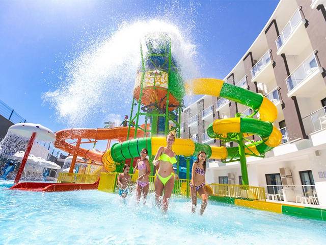 Otvoreni i zatvoreni bazeni za djecu i odrasle, aqua park, fitness soba, tursko kupatilo, sauna, stoni tenis i odbojka na pijesku. Dodatno se plaćaju: sportovi na vodi, bilijar i soba za igre. Zabavni program tokom dana, razna takmičenja pored bazena i na plaži, večernji show program. Mini klub za djecu od 4-12 godina sa različitim programima tokom dana, dječije igralište. Luna park je besplatan.