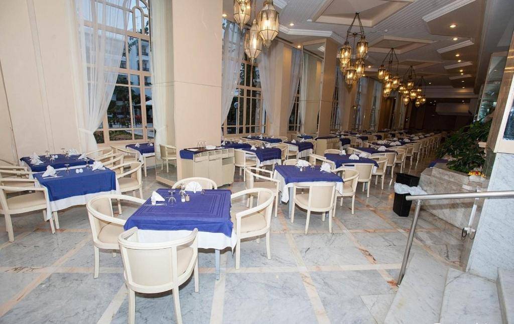 HOTELSKA PONUDA: Hotel posjeduje 4 bazena (veliki vanjski bazen, vanjski bazen s vodenim toboganima, odvojeni vanjski bazen za djecu, unutarnji bazen) sa ležaljkama i suncobranima, dnevna animacija oko bazena, aerobik, fitnes centar i teniski teren, mini golf, stoni tenis, mini disko i noćni klub. Nemotorizovani vodeni sportovi (pedaline, jedrenje na dasci itd.)