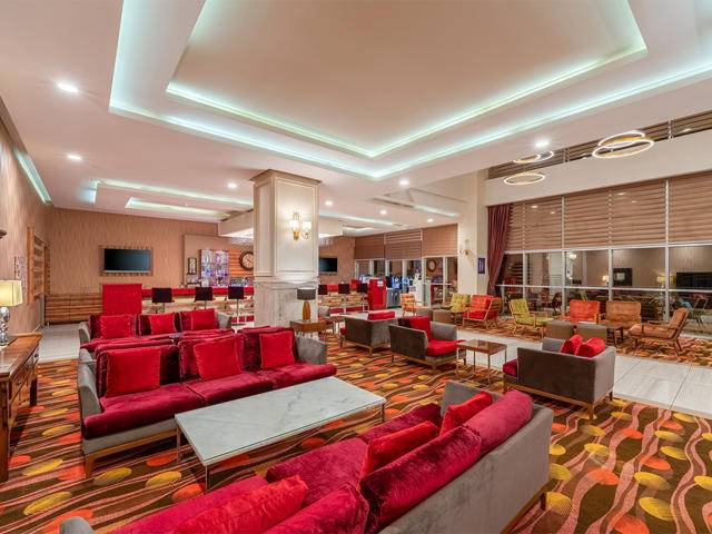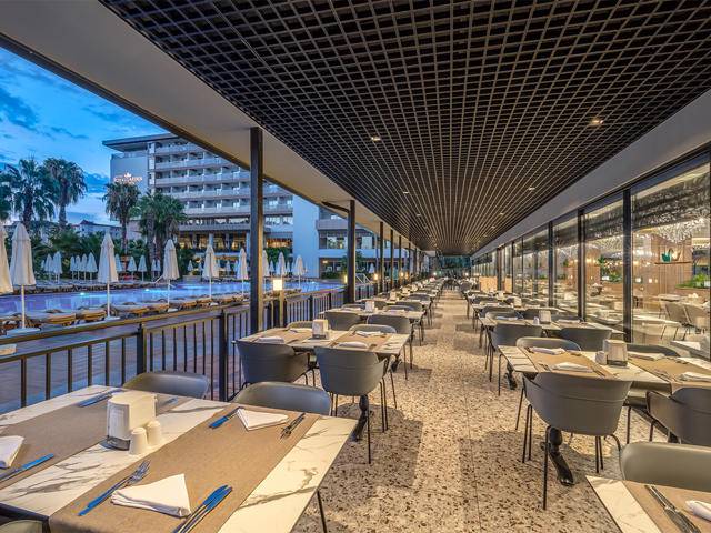 Glavni restoran sa švedskim stolom, A’la Carte restorani: La Pergola – italijanska kuhinja, Lagos – riblji restoran, Sakura – kineska kuhinja i Kebap – turski restoran. Beach bar, barovi oko hotelskog kompleksa. Usluga doktora, čuvanje djece, frizer, internet caffe, shopping centar, rent a car se dodatno naplaćuju. WI – FI internet priključak se ne naplaćuje.