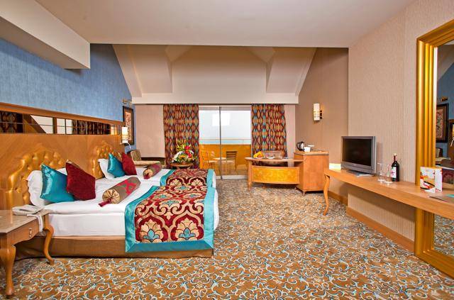 Ukupan broj soba 604. Superior standardne sobe (46m2, jedna spavaća soba sa francuskim ležajem +1 single krevet, jedno kupatilo, max.3+1chd), dupleks porodične sobe (75m2, na donjem spratu su dva kreveta + kupatilo sa tuš kabinom, na spratu je francuski ležaj sa kupatilom sa kadom, bez vrata, kao galerija, max. 4 pax.), Junior suite sobe (60m2, jedna spavaća soba i jedna dnevna soba, kupatilo sa kadom, max.2+1chd), Porodične sobe (60m2, dvije spavaće sobe sa priključnim vratima između, jedno kupatilo, max.4pax), Deluxe apartman (85m2, dvije spavaće sobe i jedna dnevna soba sa vratima između, dva kupatila, većina tih soba je sa jacuzzijem, max.4pax), King suit (180m2, na spratu roditeljska spavaća soba i kupatilo, na donjem spratu je spavaća soba za djecu, kupatilo sa tuš kabinom, dnevna soba i mala kuhinja, max.4 pax) i 6 soba za osobe sa invaliditetom. Sve sobe su sa sopstvenim kupatilom sa kadom, tušem i fenom za kosu, centralnim klima uređajem koji radi u skladu s vremenskim uslovima, direktnim telefonskim biranjem, garniturom za sjedenje, mini bar (voda, bezalkoholna pića i pivo se dopunjuju svaki dan), kuhalo, set za kafu i čaj, sef, satelitska TV i muzički kanali, WI-FI internet konekcija, tepih, balkon. Sve sobe su za nepušače.
