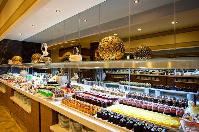 Glavni restoran sa otvorenim švedskim stolom, Bambino-dječiji restoran otvoren za vrijeme ručka i večere, snack bar na plaži i pored bazena,Bistro otvoren do 07:00h, Pera Lobby&bar otvoren 24 sata, barovi širom hotelskog kompleksa, A’la Carte restorani – Vapiano – italijanska kuhinja, Hashi – kuhinja Dalekog istoka, El Torito – meksička kuhinja, Deep Blue – restoran morske hrane, Teppanyaki –Japanska kuhinja i restoran Lal -Turska kuhinja. Doktor, usluga čuvanja djece, vešeraj i hemijsko čišćenje, frizer, telefon, faks, internet kutak i kompjuterske igrice, rent a car, tržni centar su uz doplatu. WI-FI internet niske brzine u lobiju i sobama je besplatan.