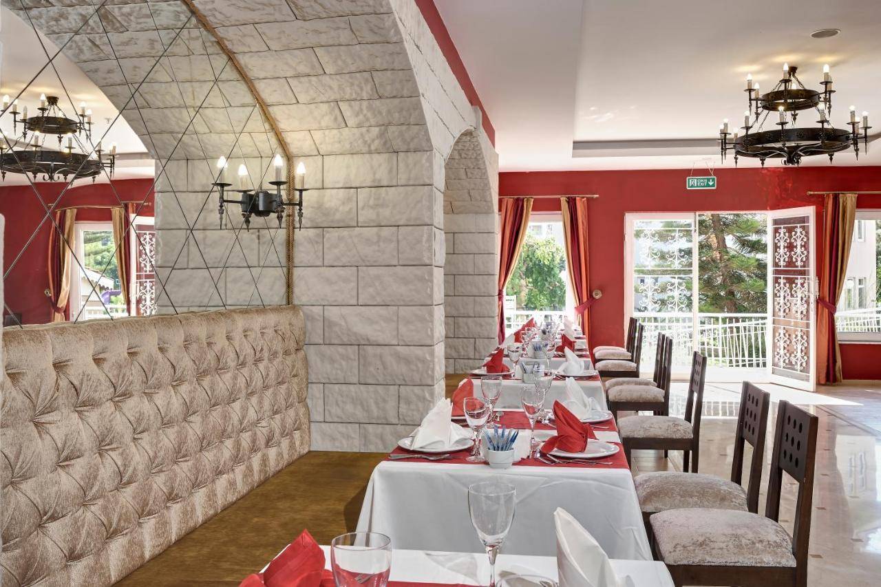 All inclusive -švedski stol za doručak, kasni doručak, ručak, popodnevna kafa, kolač i čaj, večera, kasni snack, sladoled u određenim satima, lokalna alkoholna i bezalkoholna pića od 10.00 – 24.00 sata, A’la Carte restorani uz prethodnu rezervaciju i samo jednom u toku boravka, pića u Beach baru od 10.00 – 17.00 sati. Dodatno se naplaćuju: sva uvozna pića, flaširana pića, svježi voćni sokovi, posebna vina, turska kafa, room service, sva pića u Wellness centru,piće nakon 24.00 sata, piće u Disco klubu.