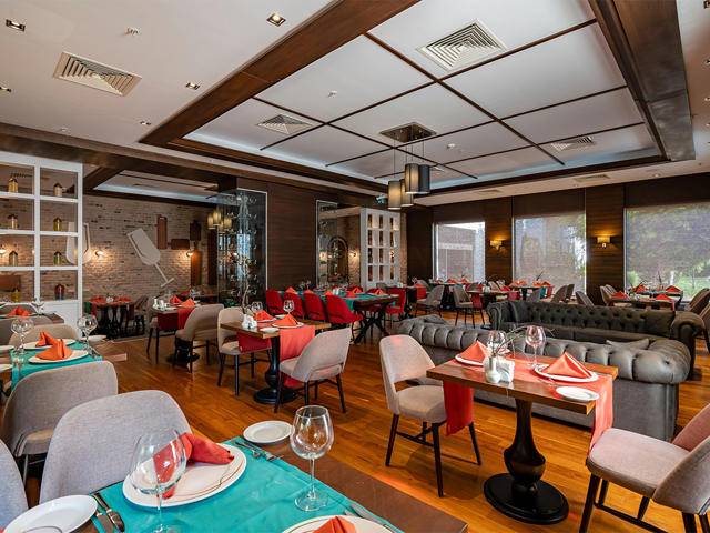 Glavni restoran za švedski sto, A’la Carte restorani– turski, meksički, italianski, lobby bar, bar pored bazena i bar na plaži. Doktor, babysitting, vešeraj, rent a car, frizerr, shopping centar, telefon, fax su uz doplatu. WI – FI internet u sobama i u lobby zoni je besplatan.